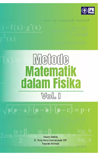 Volume pertama dari buku ini meliputi enam bab yang terdiri dari materi mengenai deret tak hingga deret pangkat dan uraian Taylor bilangan kompleks ruang vektor dan matriks turunan dan diferensiasi parsial teknik integrasi dan integral lipat dan analisis vektor Untuk setiap bab selain dibahas mengenai dasar dasar materi dan soal soal latihan terkait juga diberikan contoh penggunaannya dalam fisika yang diharapkan dapat memberikan wawasan yang memadai Volume pertama dari buku ini meliputi enam bab yang terdiri dari materi mengenai deret tak-hingga, deret pangkat dan uraian Taylor, bilangan kompleks, ruang vektor dan matriks, turunan dan diferensiasi parsial, teknik integrasi dan integral lipat, dan analisis vektor. Untuk setiap bab selain dibahas mengenai dasar-dasar materi dan soal-soal latihan terkait, juga ...diberikan contoh penggunaannya dalam fisika yang diharapkan dapat memberikan wawasan yang memadai.